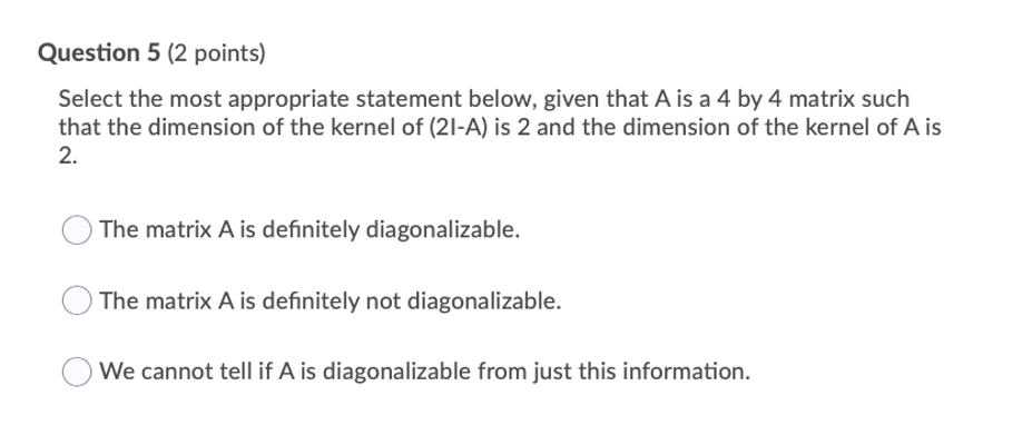Solved Question 1 2 Points The Matrix A Is A3 By 3 Matr Chegg Com